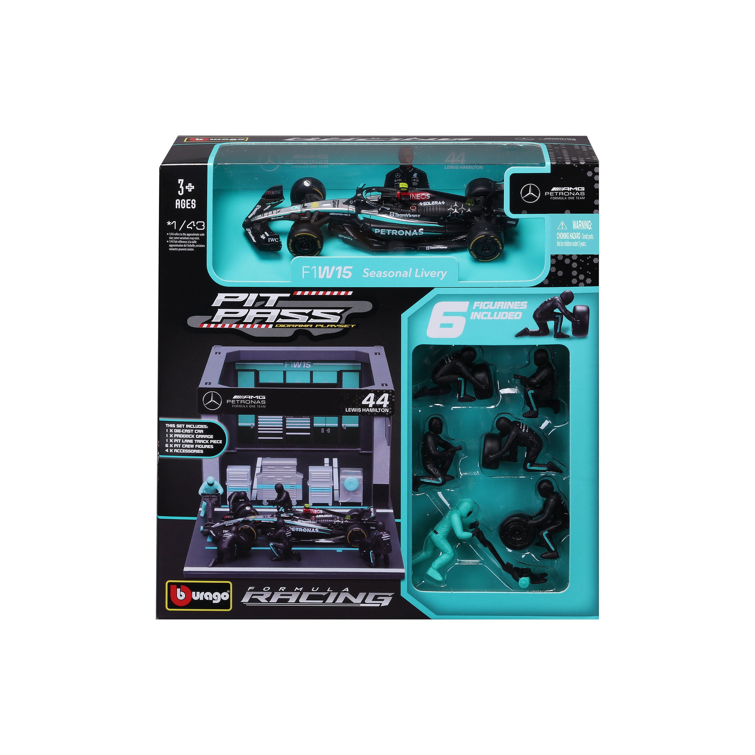1/43 DIORAMA PIT STOP COM ACESSORIOS F-1 2024 MERCEDES-AMG W15 #44 HAMILTON